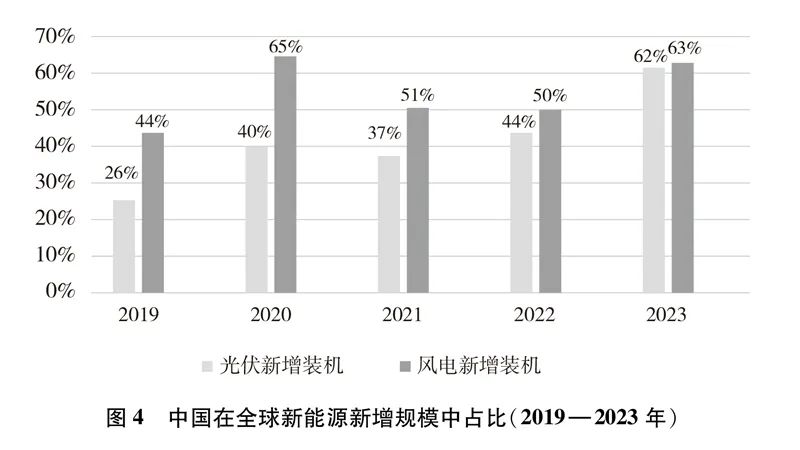 中国新能源产业为全球提供绿色动力。中国依托持续的技术创新、完善的产业链供应链体系、充分的市场竞争、超大规模的市场优势实现了新能源产业快速发展,丰富了全球供给、缓解了全球通胀压力,为世界各国共同应对气候变化、增进人类福祉作出了贡献。中国生产的光伏组件和风电装备为可再生能源在越来越多国家广泛经济利用创造了条件。国际可再生能源署报告指出,过去10年间,全球风电和光伏发电项目平均度电成本分别累计下降超过了60%和80%,这其中很大一部分归功于中国的贡献。