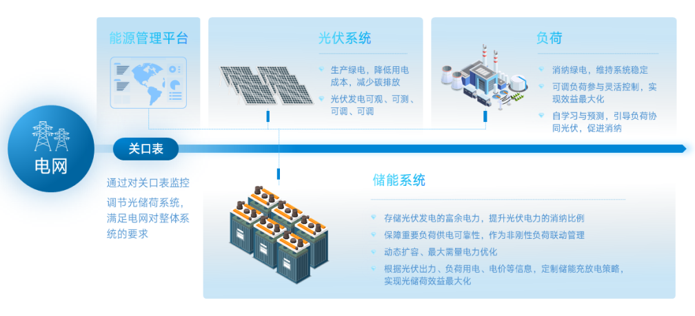 光储荷网一体化技术可以通过多能互补和储能响应,实现电网友好和荷随源动的目标,促进新能源和复杂产业相融合,为大电网的稳定运行提供了支持。其中,能源管理平台是落实光储荷有效联动的核心中枢,可以根据光伏出力、储能功率、负荷用电、电网电价等信息,定制储能充放电策略,实现用户效益最大化,满足电网整体系统的要求。