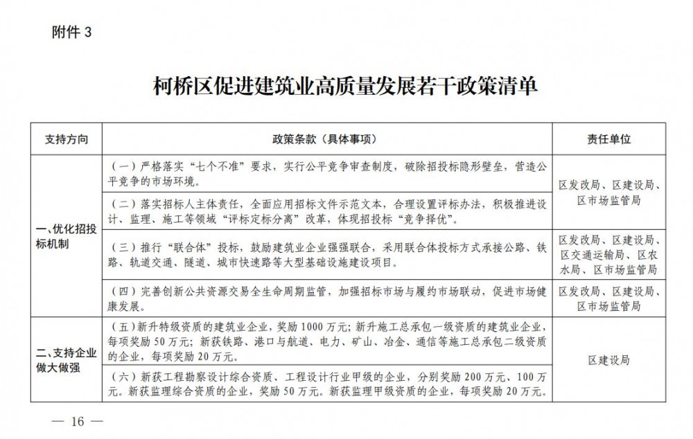 3. 柯桥区促进建筑业高质量发展若干政策清单