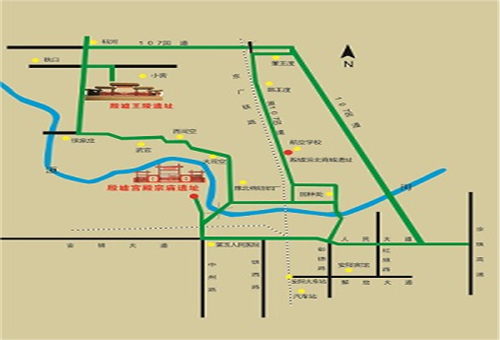 京港澳高速公路安阳北出口站下道(全程约180公里),沿人民大道西行殷墟路口右转即到。