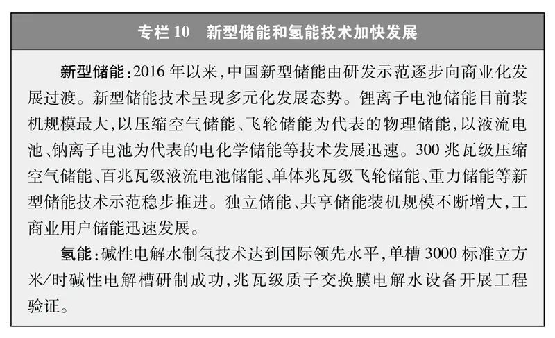 大力发展绿色能源技术。建成完备的风电、光伏全产业链研发设计和集成制造体系,高效晶体硅、钙钛矿等光伏电池技术转换效率多次刷新世界纪录,量产先进晶体硅光伏电池转换效率超过25%。陆上风电机组最大单机容量突破10兆瓦,单机18兆瓦的海上风电机组顺利下线。水电设计、施工、设备制造全产业链体系全球领先,世界最大单机容量100万千瓦水电机组已在白鹤滩水电站投运。全面掌握“华龙一号”“国和一号”等大型三代压水堆和高温气冷堆第四代核电技术,“玲龙一号”小型压水堆示范工程开工建设。智能电网技术处于世界前列,建成柔性直流输电等标志性工程。新型储能和氢能技术加快发展。